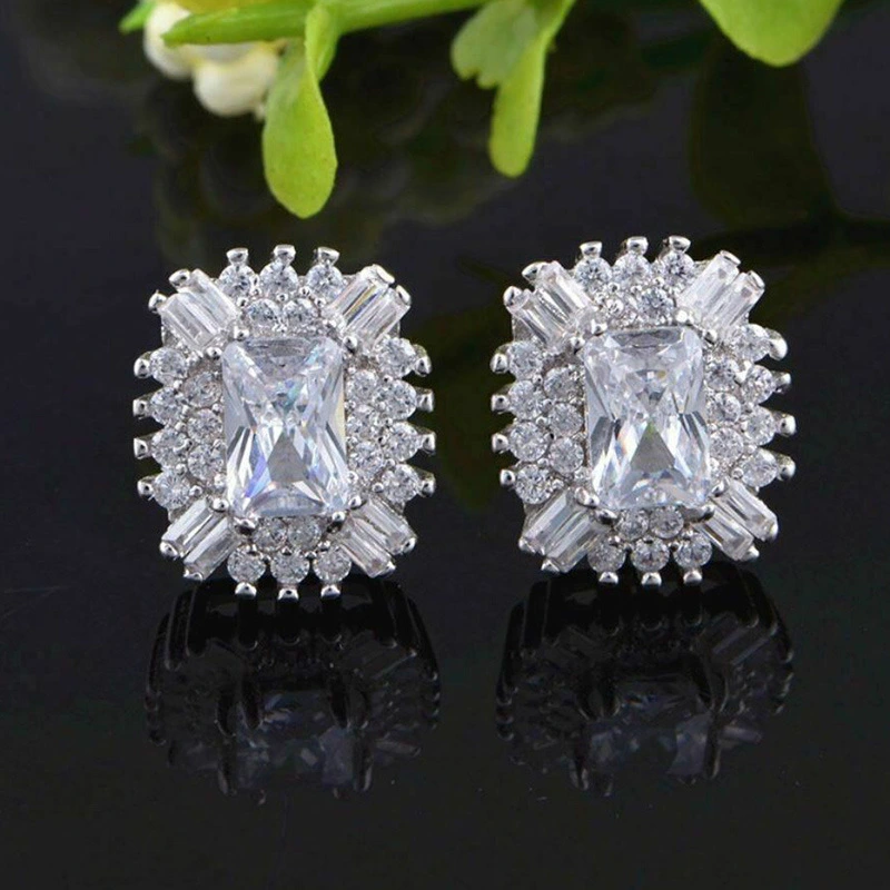 Novo estilo de brincos banhados a cobre com platina e cheios de zircônias brincos para mulheres brincos de noiva de luxo venda imperdível
