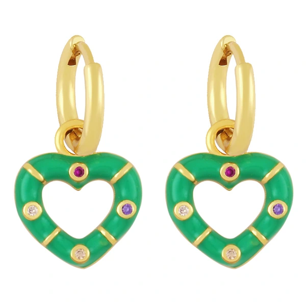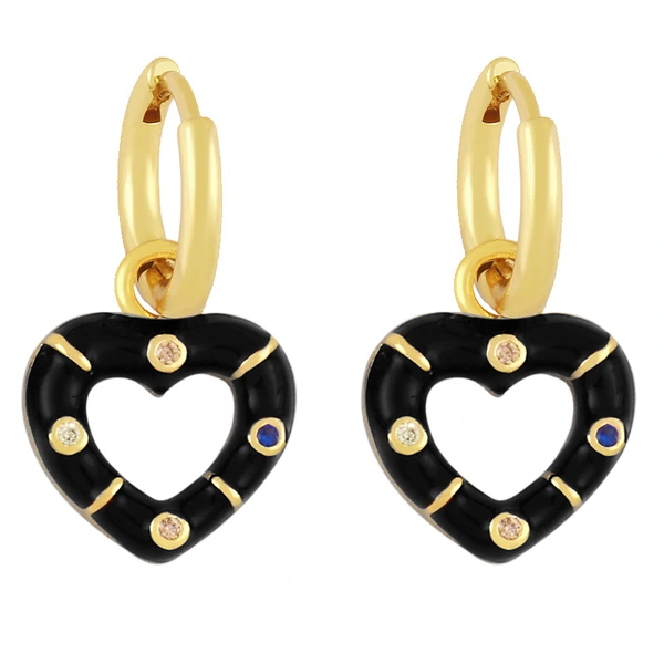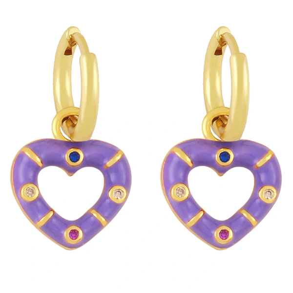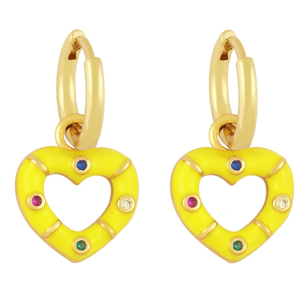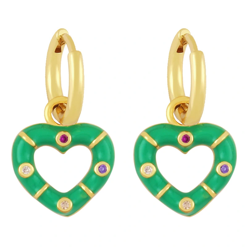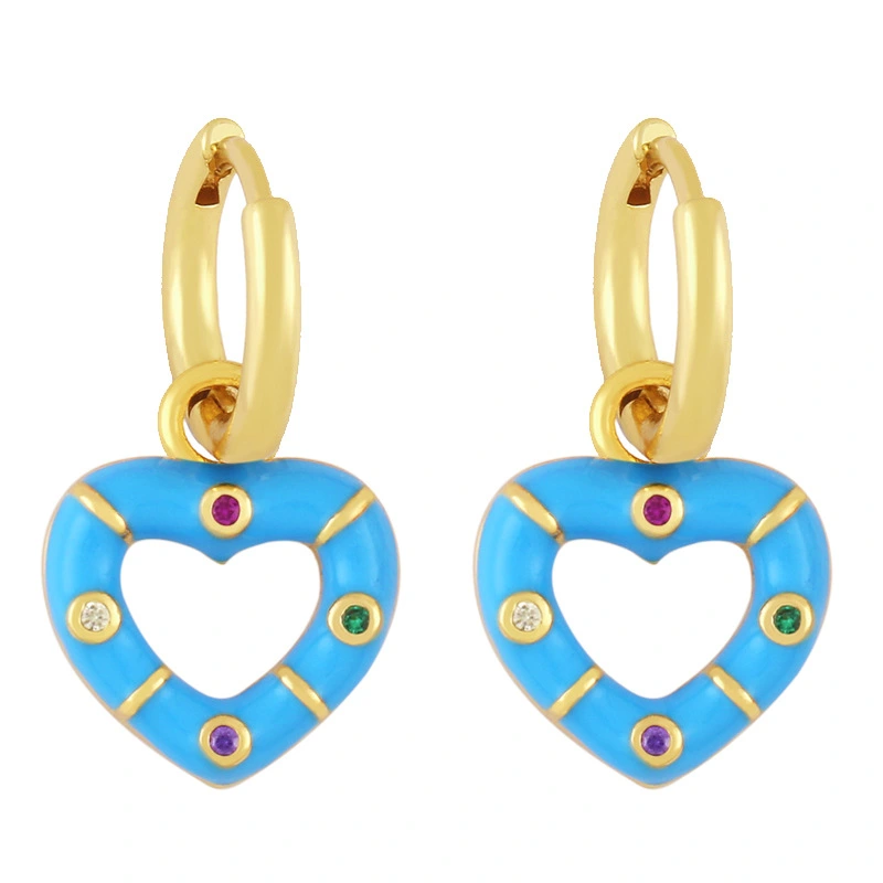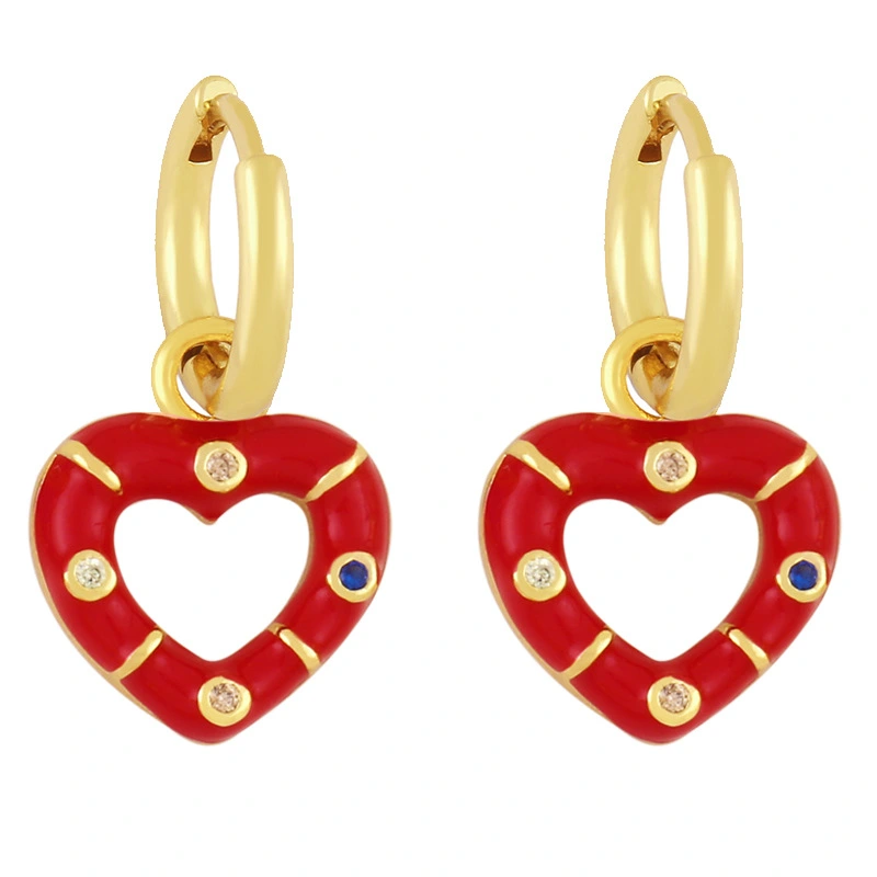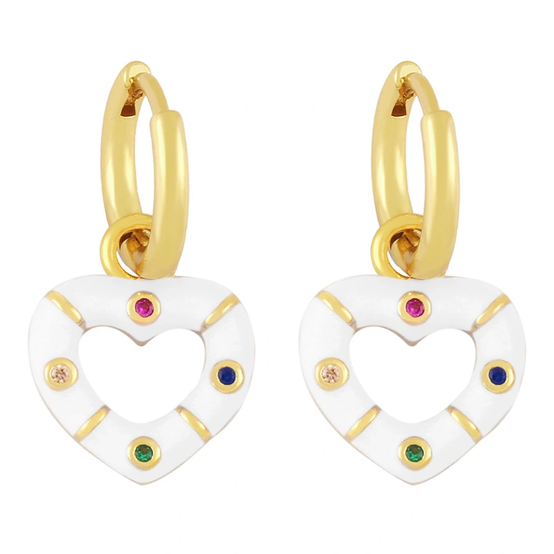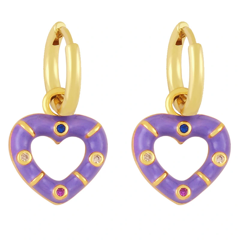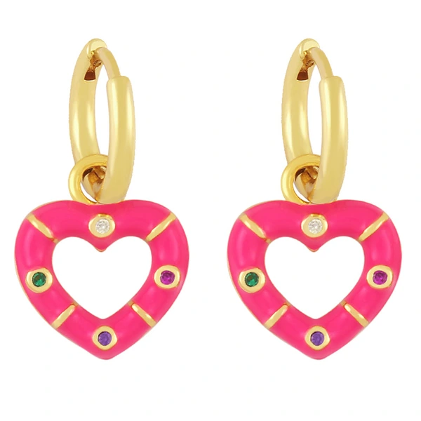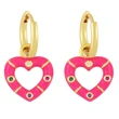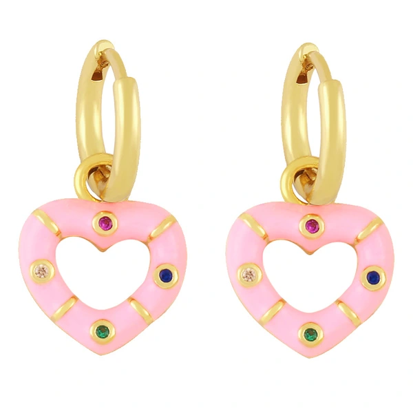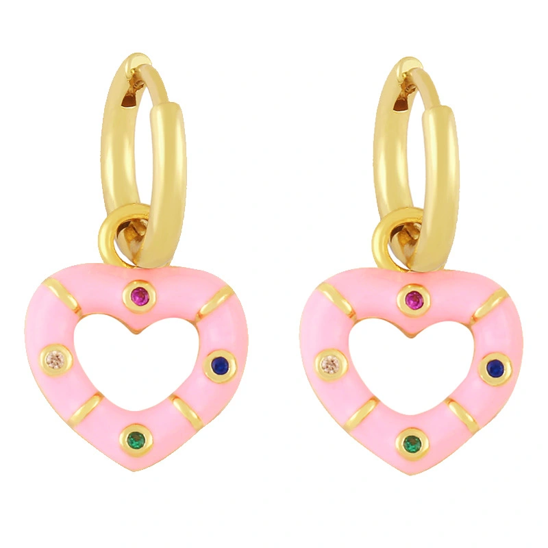 Novo estilo de brincos de coração coloridos banhados a cobre com brincos de retenção de cor de ouro verdadeiro brincos de gota de óleo lindos brincos de coração de pêssego ery01