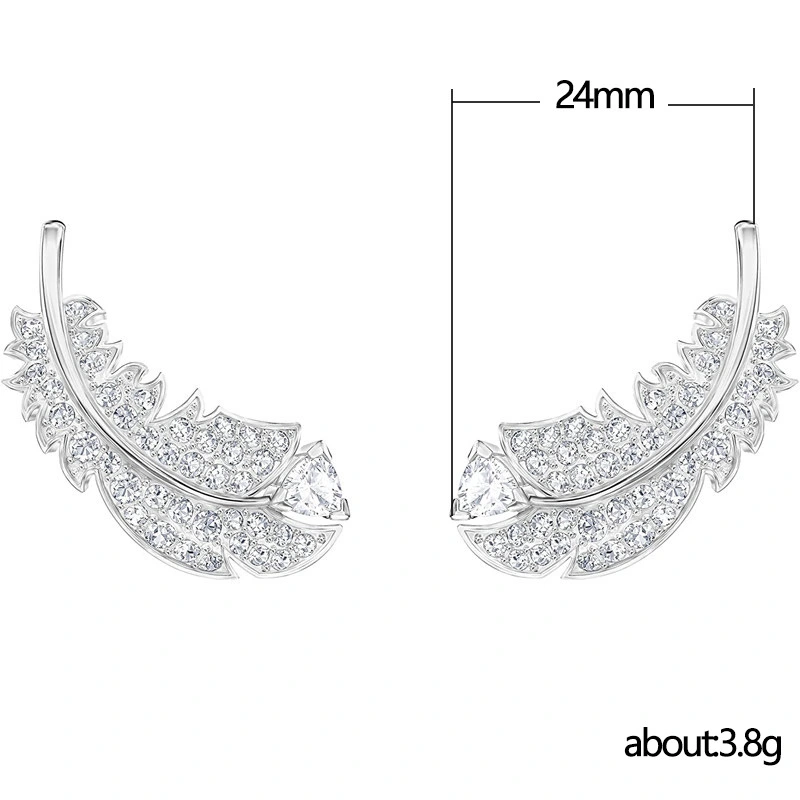 Novo estilo elegante brincos de piercing de pena leve para mulheres personalidade temperamento pequenos brincos de zircônia incrustada