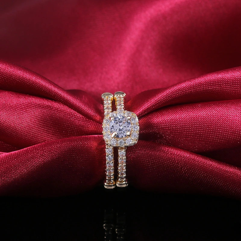 novos anéis combinados de zircónia microincrustada banhados a ouro e cobre para joias de comércio eletrónico, anéis de noivado populares para mulheres europeias e americanas