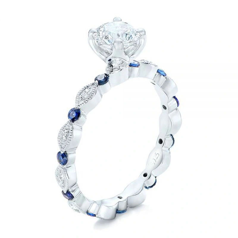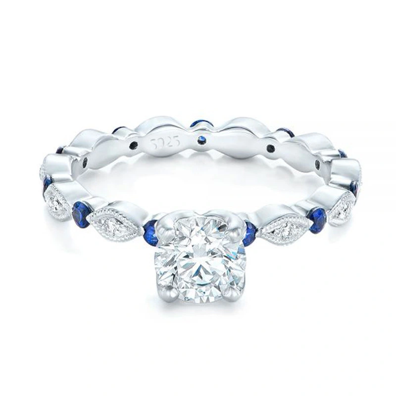 Anel de casamento clássico com seis garras de zircónia, estilo celebridade, microincrustado, leve, luxuoso, estilo europeu e americano