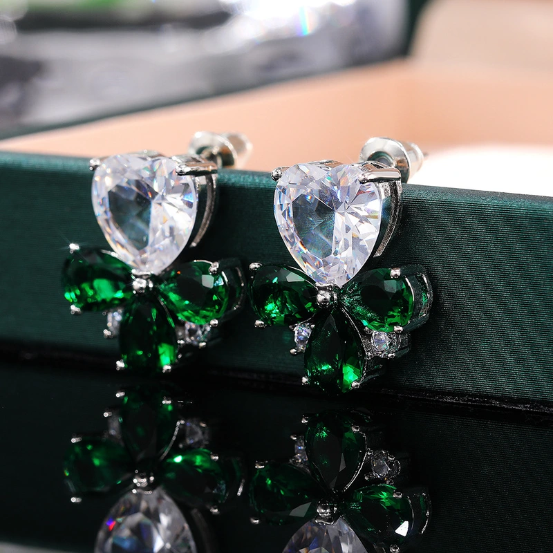 Novos brincos de estilo japonês e coreano, brincos de zircónia em forma de coração com flores doces, brincos femininos mais vendidos do Instagram