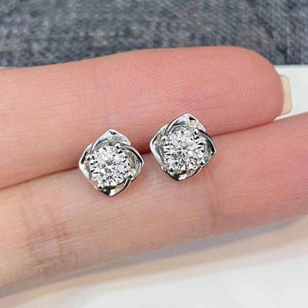 Novos brincos de flor de bauhinia com diamantes para estudantes, mini brincos florais de zircónia, joias banhadas a cobre e ouro branco