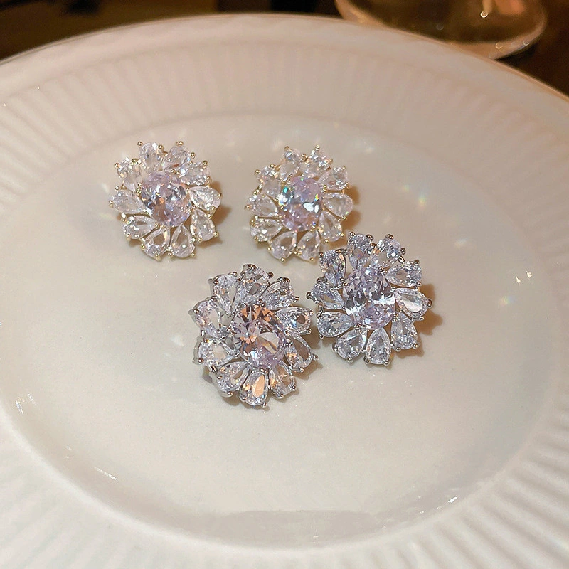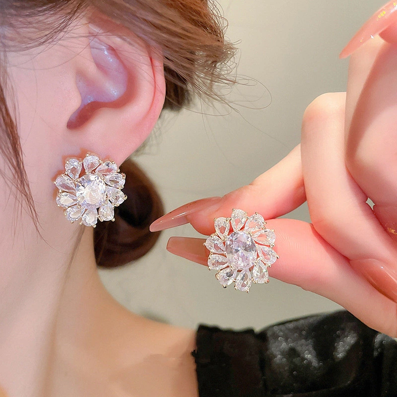 Brincos coreanos requintados com microincrustações de zircónia, super brilhantes, versáteis para o dia a dia, brincos leves e luxuosos de alta qualidade, fabricante de fontes