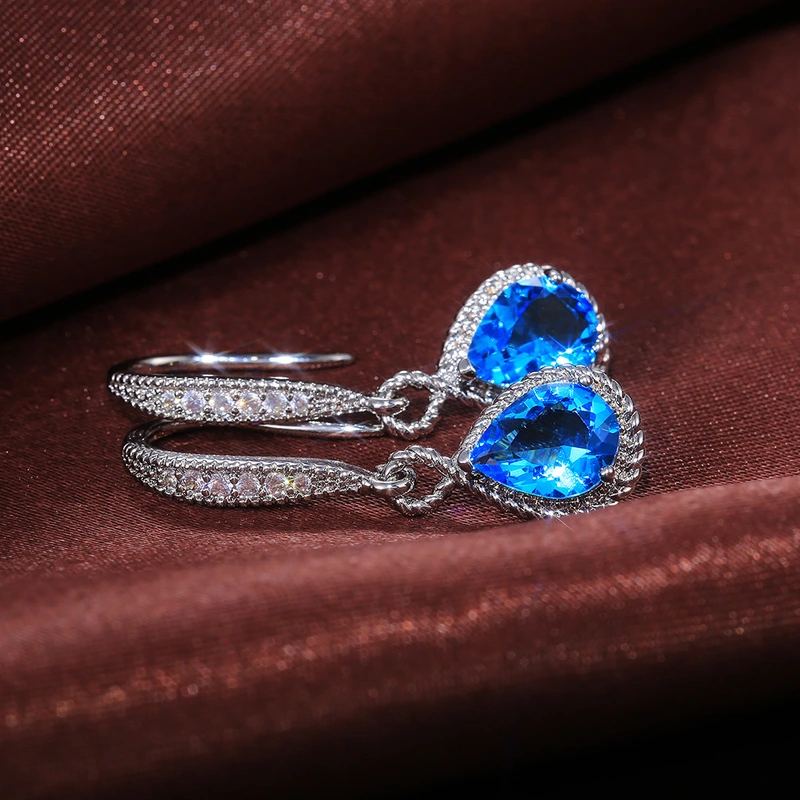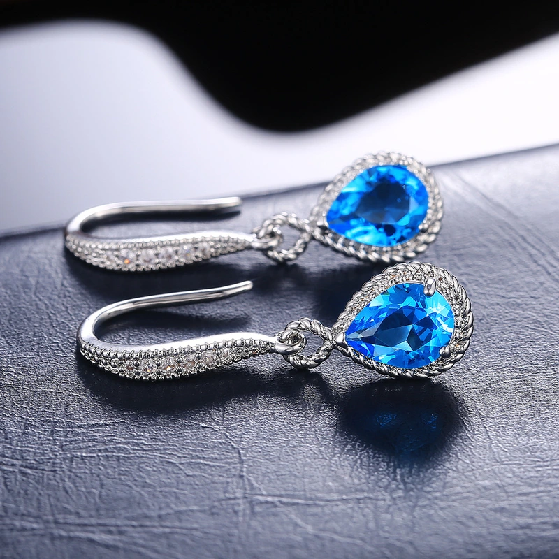 Novos brincos de lágrima azuis de moda requintada recomendados, joias femininas para orelha, atacado