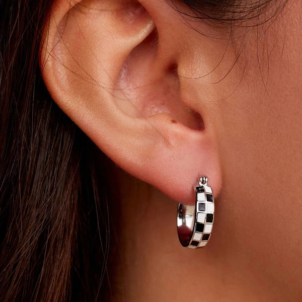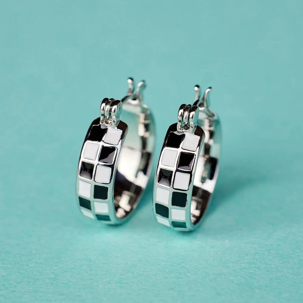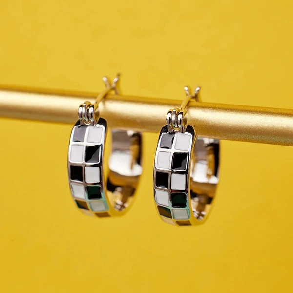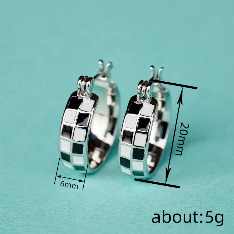 Novos brincos de nicho europeus e coreanos para mulheres, acessórios de design moderno em xadrez, estilo passerelle, joias de personalidade chiques