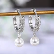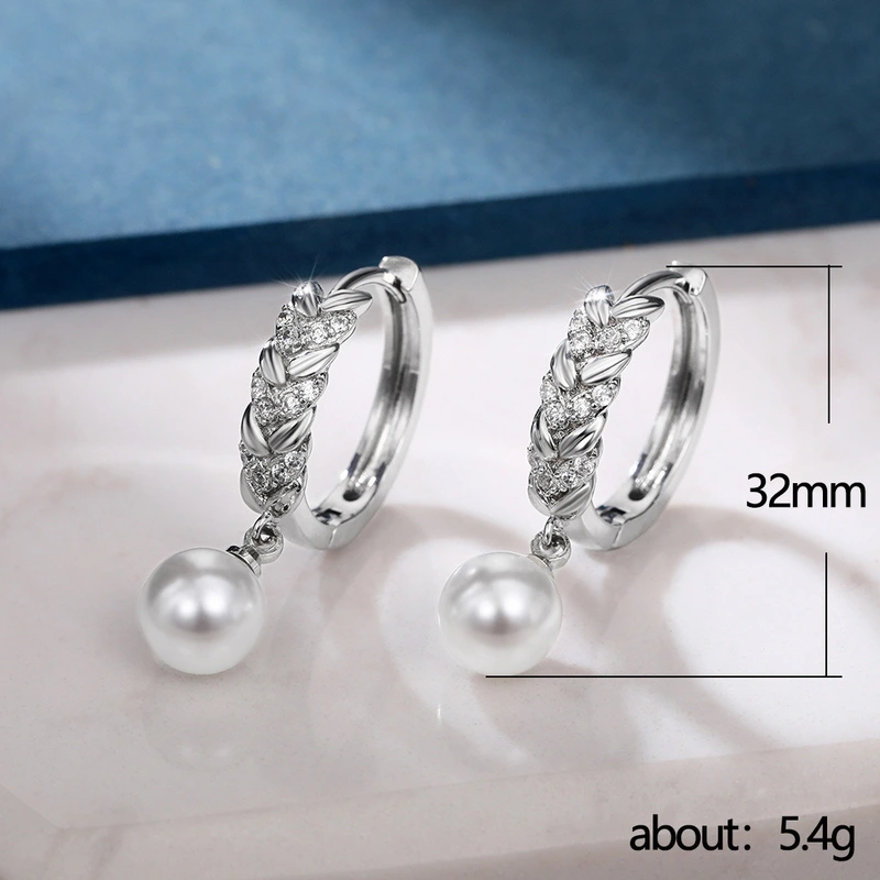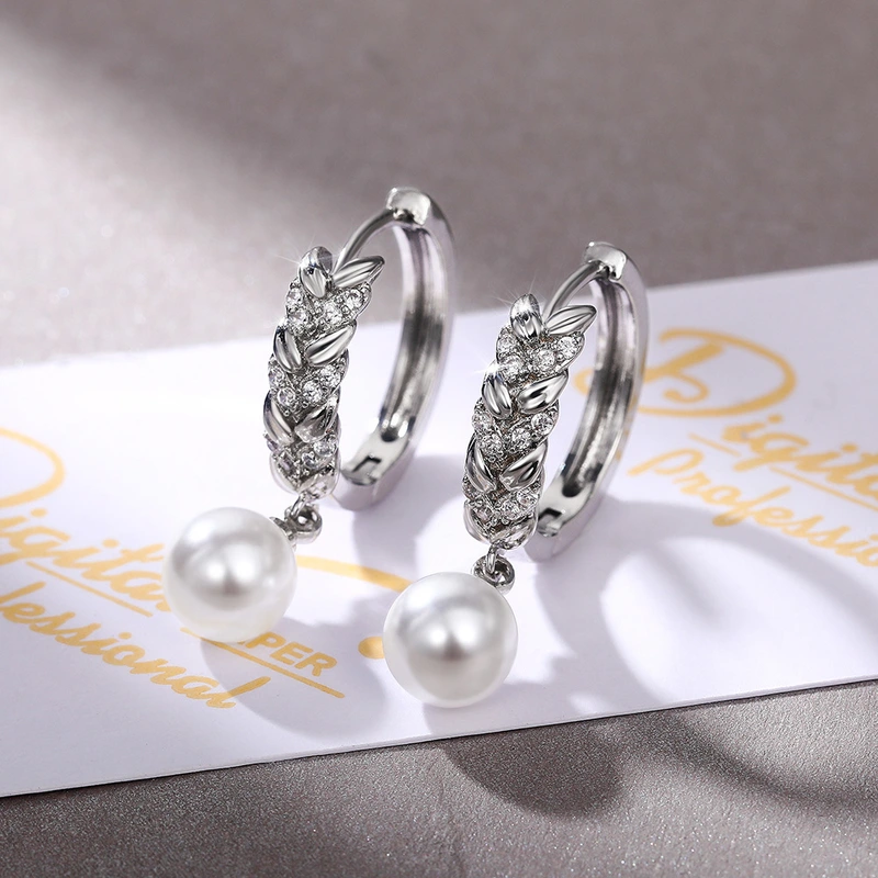 Novos brincos de orelha de trigo com zircónia banhada a platina para mulheres, estilo maduro leve, brincos de contas de pérolas artificiais