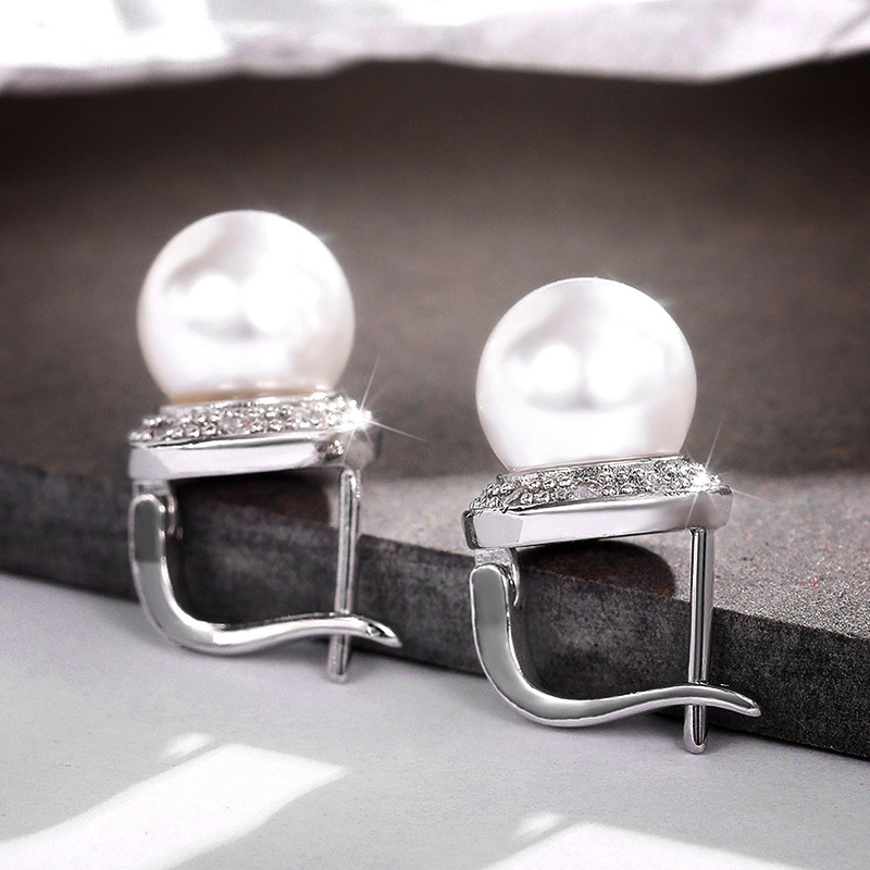 Novos brincos de pérolas artificiais de zircônia redonda simples e elegantes para mulheres, fabricantes no atacado