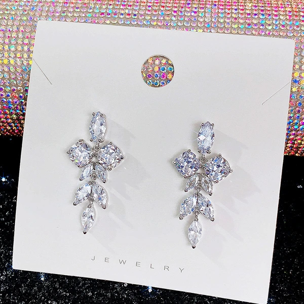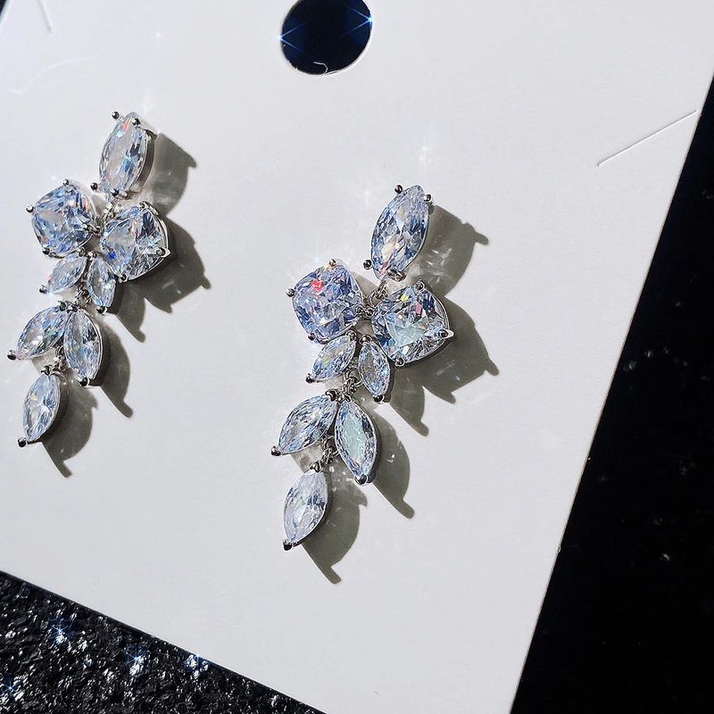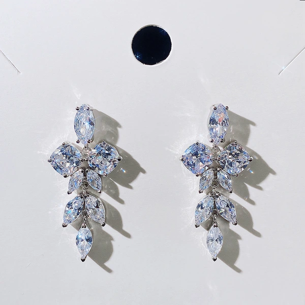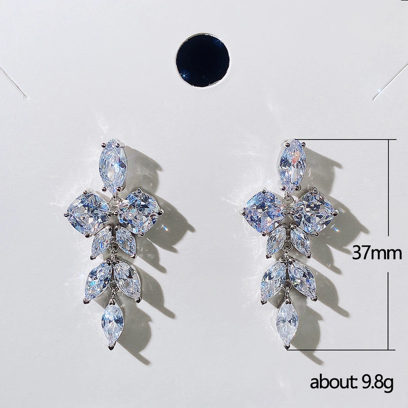 Novos brincos de zircónia com flor de ramo de oliveira de luxo requintados, joias femininas doces para noivas
