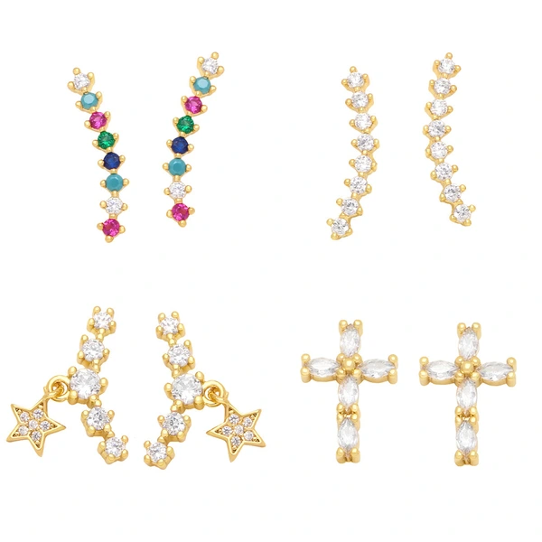 Novos brincos de zircônio coloridos femininos, moda europeia e americana, simples, celebridade da internet, brincos retrô em cruz, era057