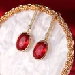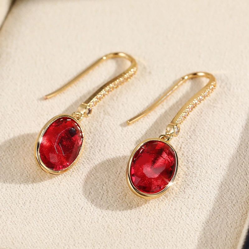 novos brincos europeus e americanos, brincos japoneses e coreanos simples de zircónia vermelha oval, brincos versáteis de imitação de corindo vermelho