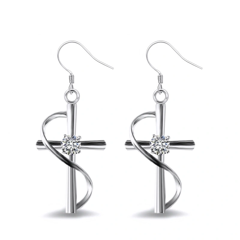 Novos brincos geométricos populares europeus e americanos para mulheres, brincos longos de zircónia incrustada por atacado