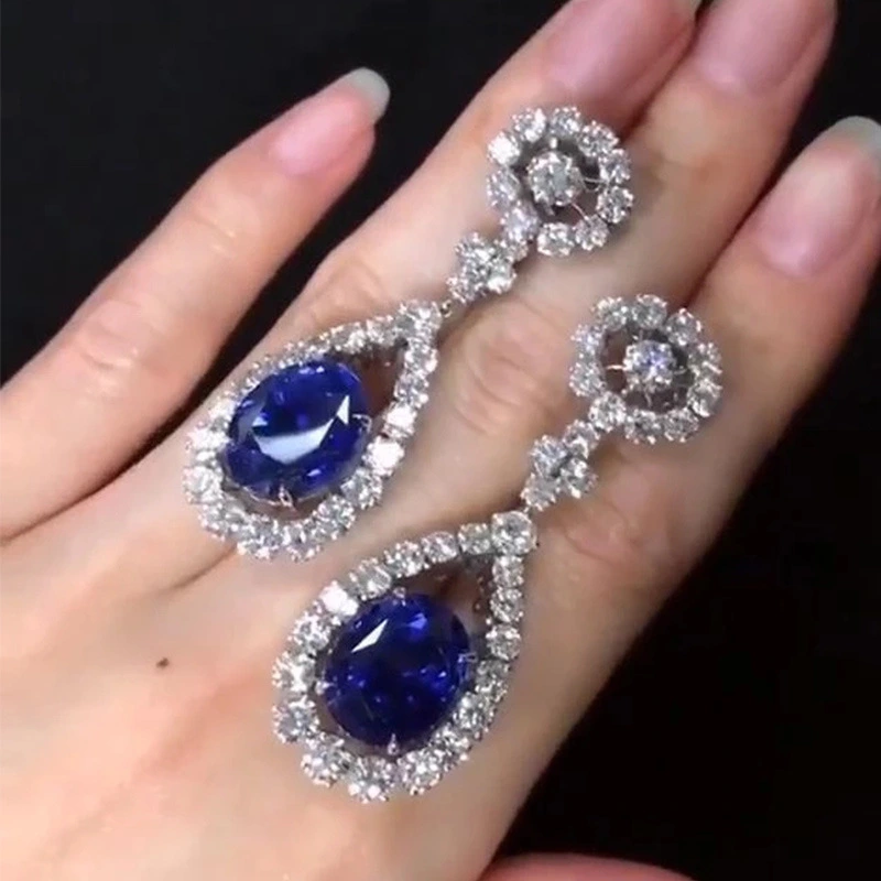 novos brincos para mulheres incrustados com zircônia azul royal brincos longos brincos de comemoração de aniversário
