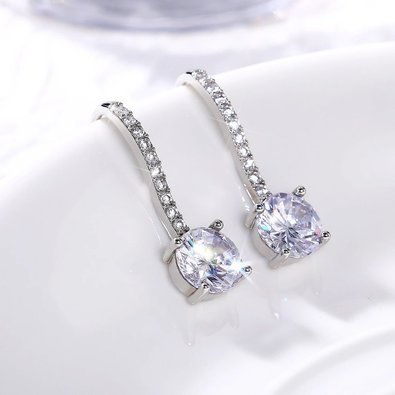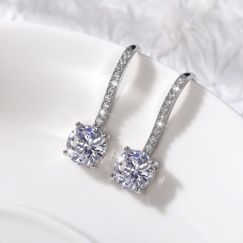 Novos ganchos de orelha de zircónia do fabricante, brincos populares da moda europeia e americana para mulheres, estilo longo, microincrustados, brincos mais vendidos