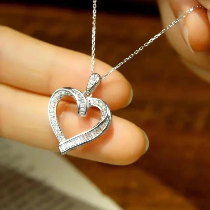 Colar estilo coreano com zircónias em forma de coração, presente romântico, pendente de confissão doce, corrente de clavícula de amor em forma de coração