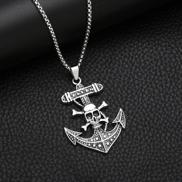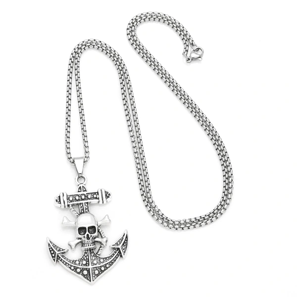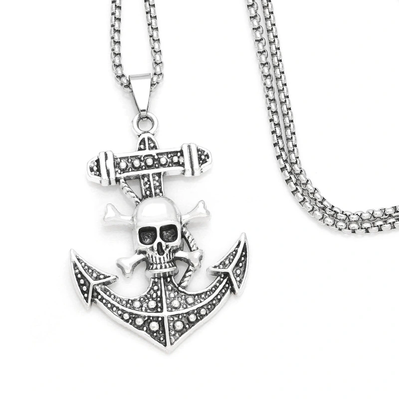 Pingente de caveira pirata hip-hop com personalidade europeia e americana, corrente de suéter, colar retrô masculino de aço inoxidável nkz79