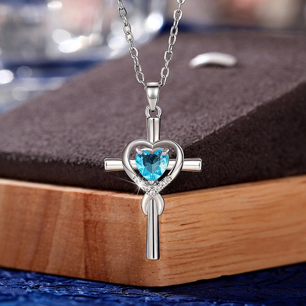 Novo produto com transmissão ao vivo, simulação de temperamento, pendente de coração do oceano, colar triangular, colar retro com coração pulsante