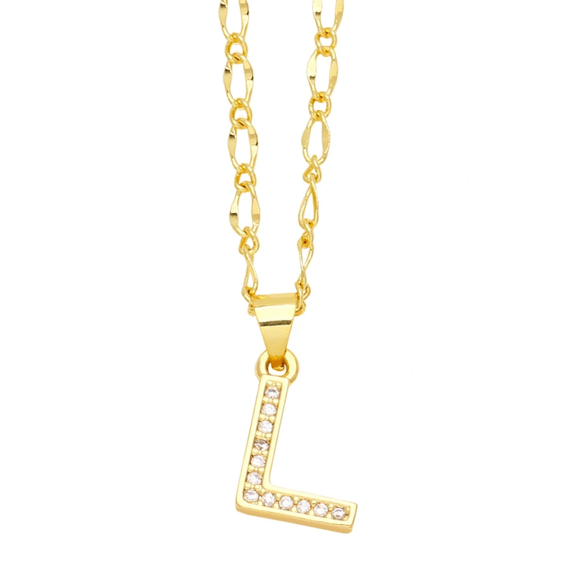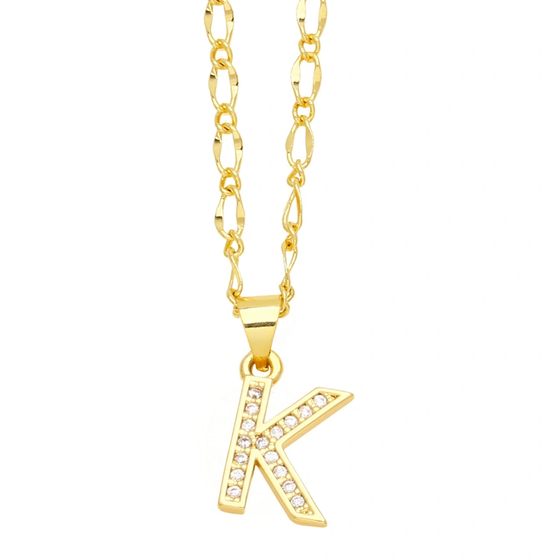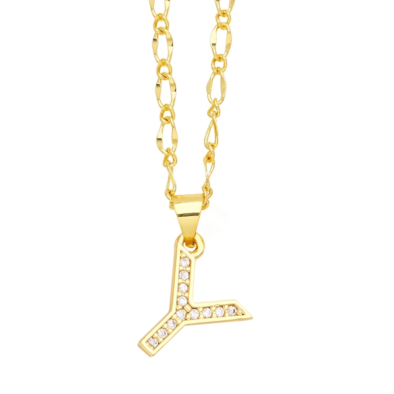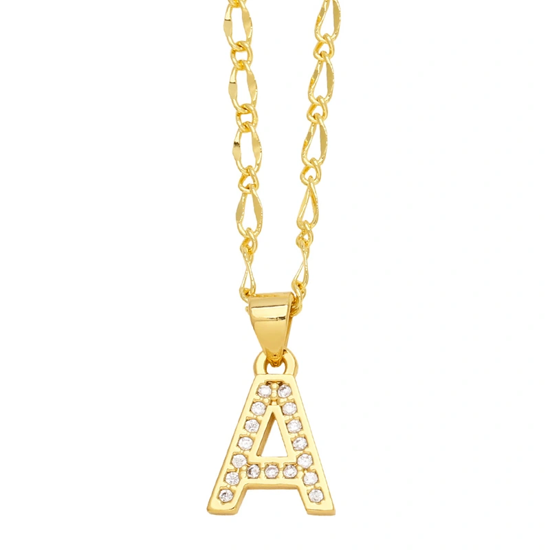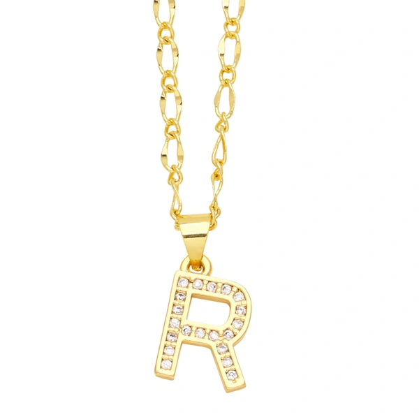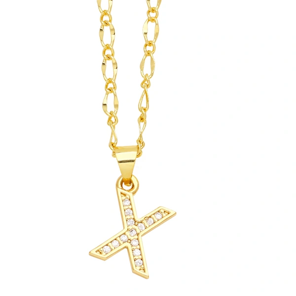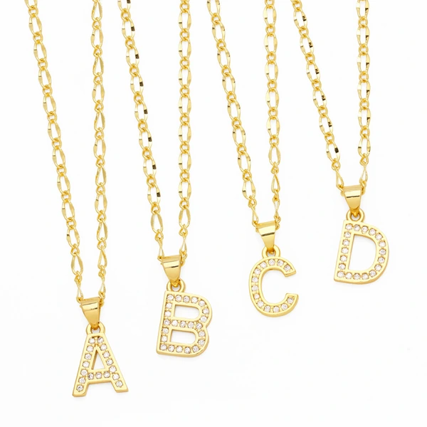 Pingente de letra mais vendido com micro zircônia incrustada, colar com 26 letras em inglês, corrente para clavícula feminina nkw42