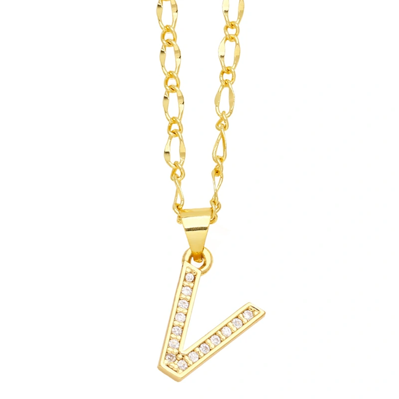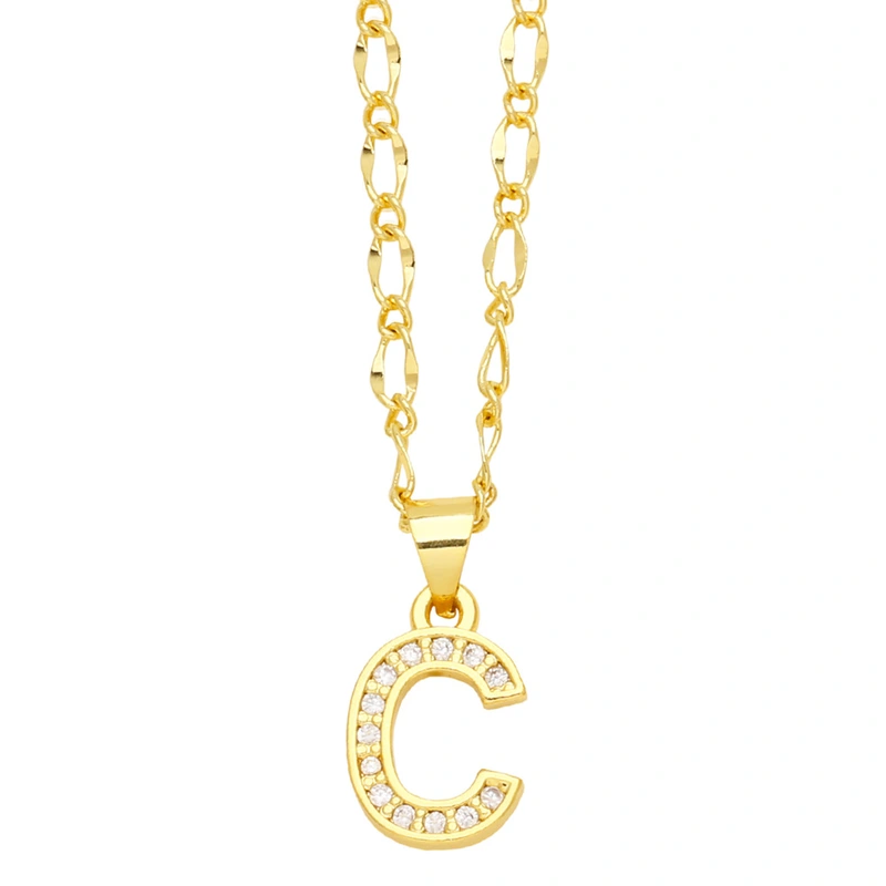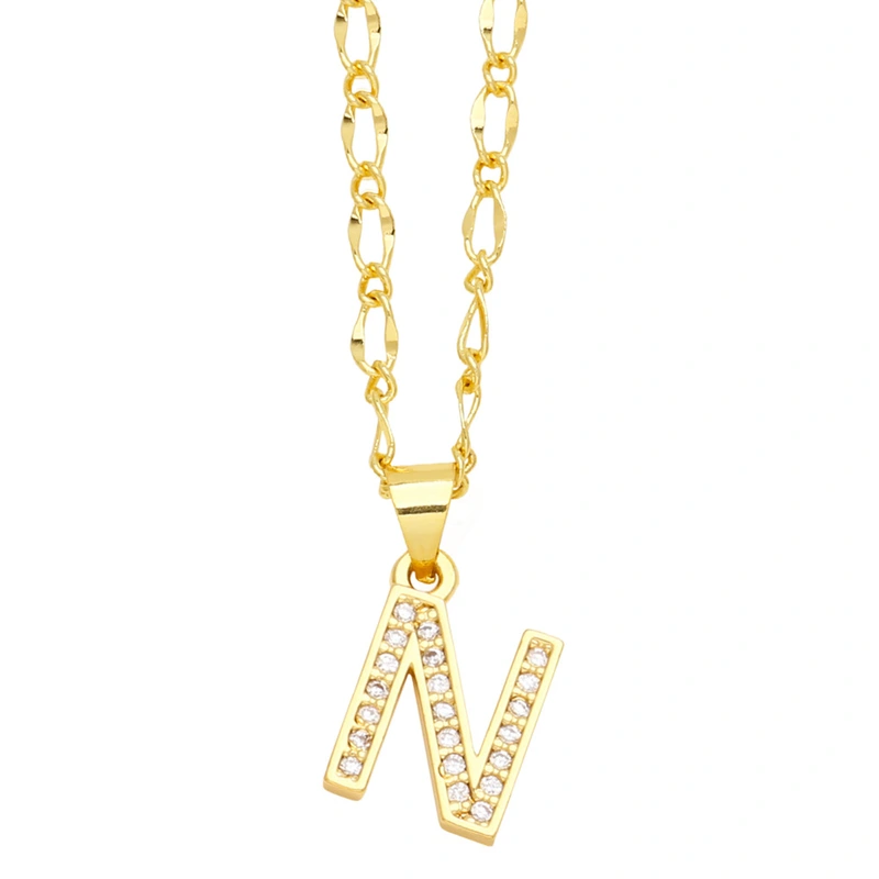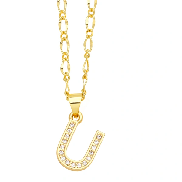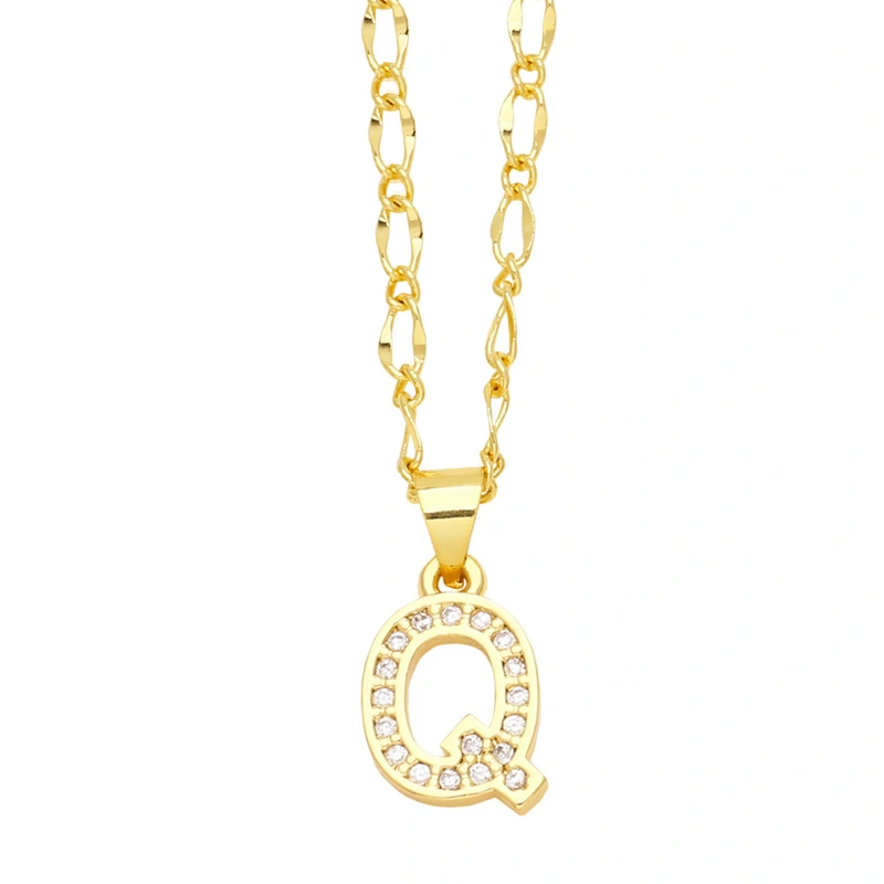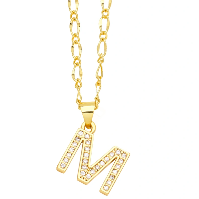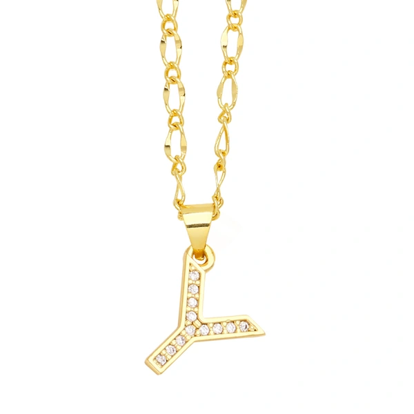 Pingente de letra mais vendido com micro zircônia incrustada, colar com 26 letras em inglês, corrente para clavícula feminina nkw42