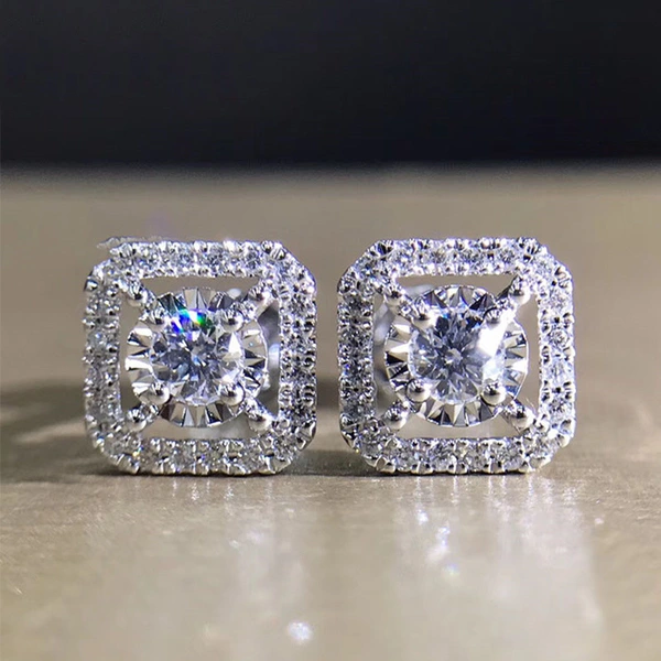 Promoção imperdível em dongdaemun, coreia. Brincos de zircónia quadrados simples e pequenos, elegantes e versáteis, joias bonitas e elegantes para celebridades.