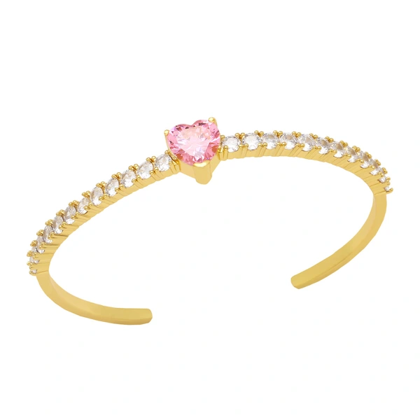Pulseira aberta de zircônia em formato de coração, estilo europeu e americano, pulseira de amor, design de moda feminina, joias de mão brh99
