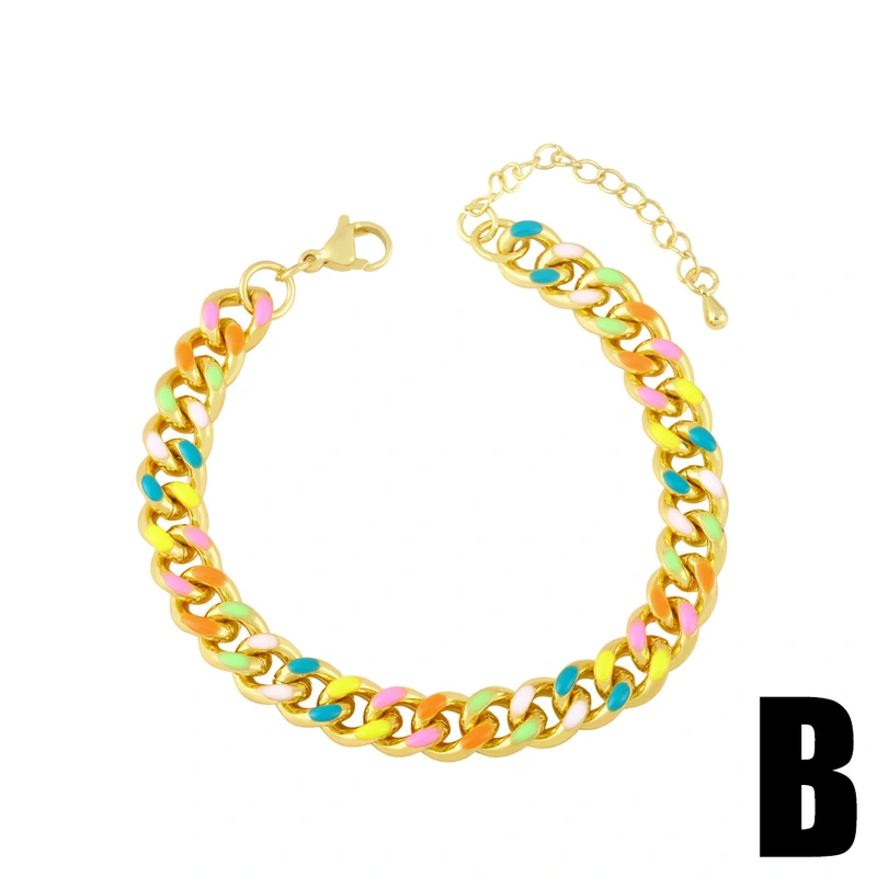 Pulseira boêmia estilo étnico europeu e americano com pingente de gota de óleo e corrente cubana com rosto sorridente bre29