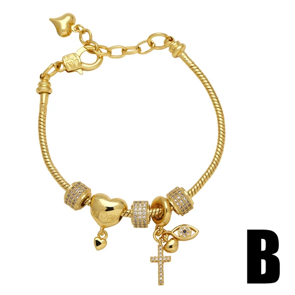 Pulseira com pingente de coração de zircônia e pêssego, banhada a cobre, pulseira de cruz em ouro 18k brf89