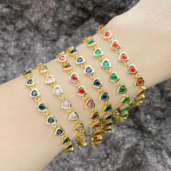 Pulseira de amor de personalidade simples europeia e americana, design de nicho feminino, pulseira de emenda de zircônia em forma de coração, joias de mão de celebridades brh79