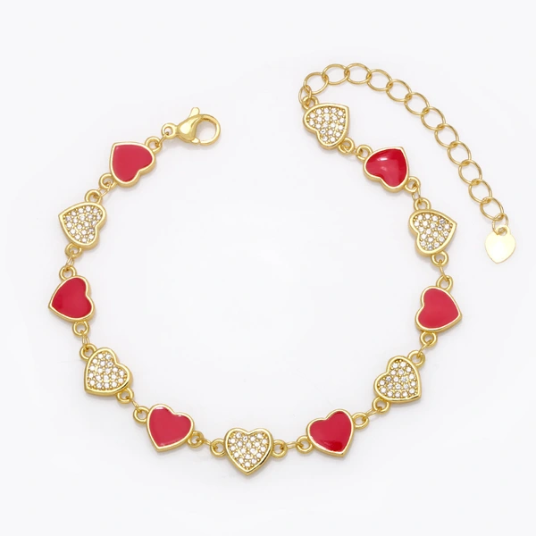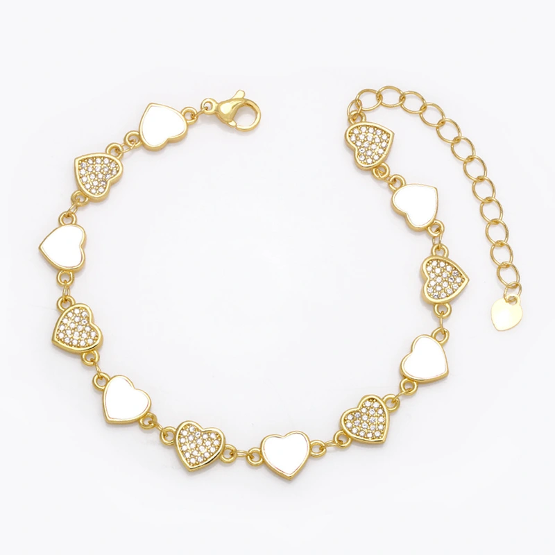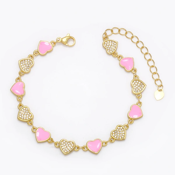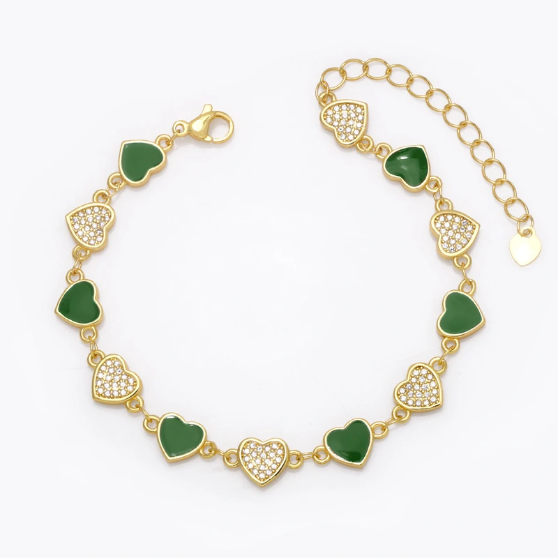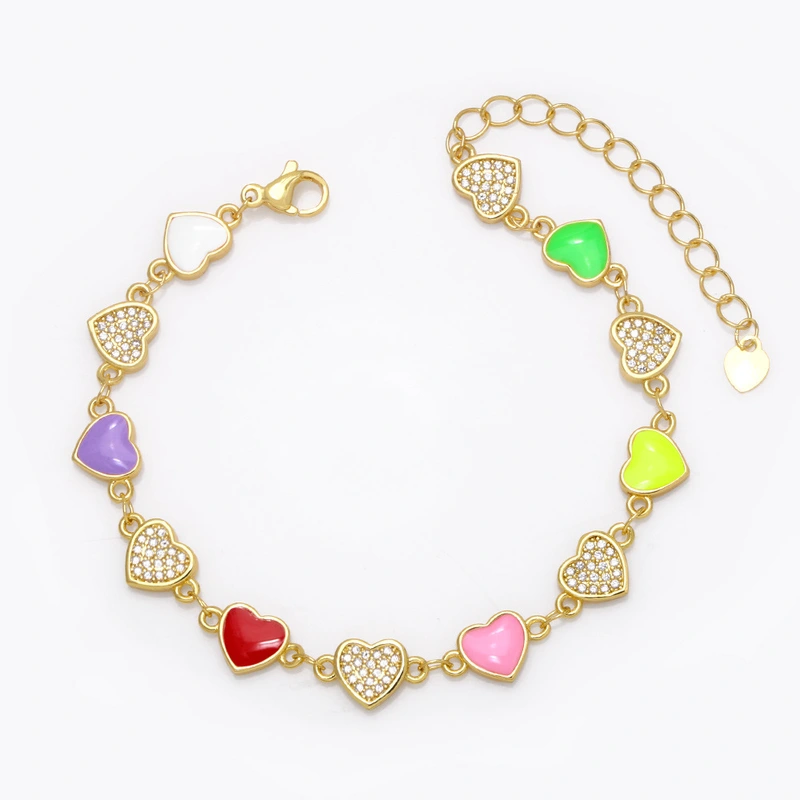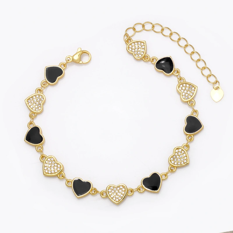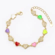 Pulseira de amor feminina europeia e americana, cor boêmia, gota de óleo, formato de coração, joias de mão com diamantes brf88