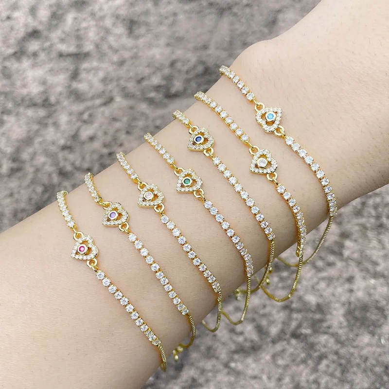 Pulseira de amor temperamento simples feminina europeia e americana popular cheia de diamantes zircônia ajustável em forma de coração brg53