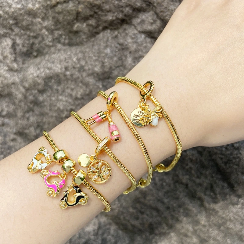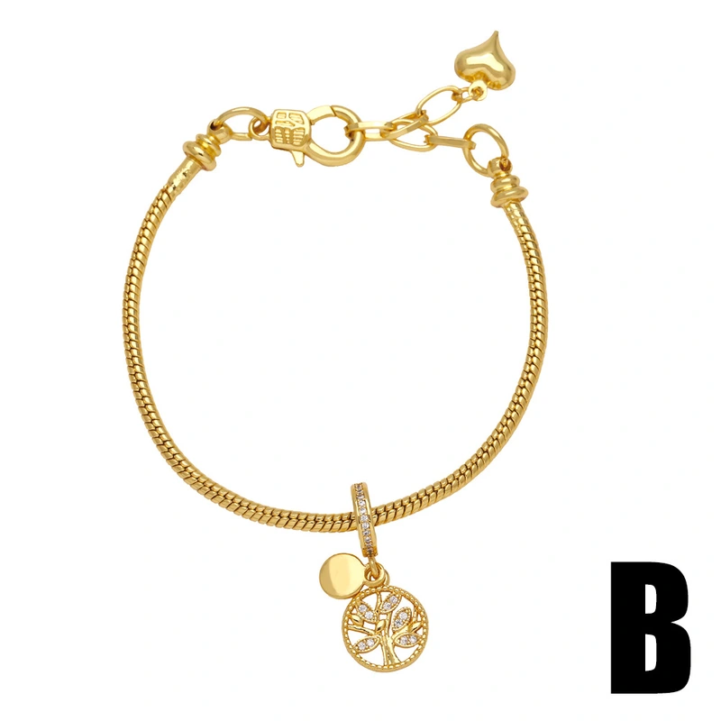 Pulseira de árvore da vida feminina banhada a ouro com zircônia incrustada a óleo, joia de viagem, brd96