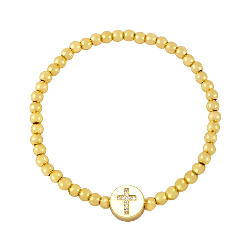 Pulseira feminina com 26 letras em inglês, contas de cobre europeias e americanas, pulseira elástica de pérolas, pulseira fashion com letras de coroa brf80