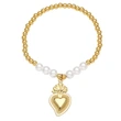 Pulseira feminina com 26 letras em inglês, contas de cobre europeias e americanas, pulseira elástica de pérolas, pulseira fashion com letras de coroa brf80