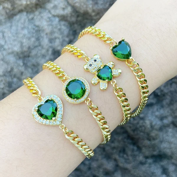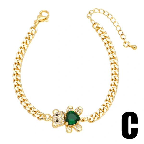 Pulseira de coração de pêssego com zircônia incrustada, pulseira versátil de joias de urso feminina brm26