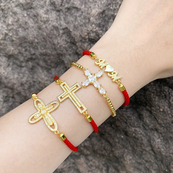 Pulseira de corda vermelha com cruz, joias mais vendidas, estilo europeu e americano, simples, com letras combinando, pulseira mãe brd73