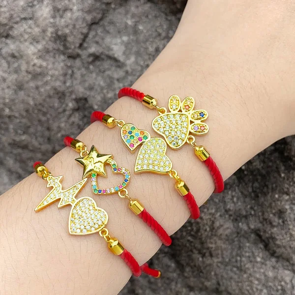 Pulseira de mão com cordão vermelho, joia estilosa, personalidade, cor, zircônia, geométrica, amor, versátil, brj75