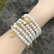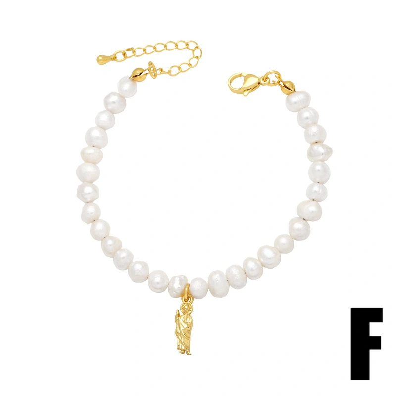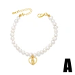 Pulseira feminina com 26 letras em inglês, contas de cobre europeias e americanas, pulseira elástica de pérolas, pulseira fashion com letras de coroa brf80