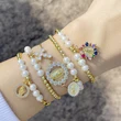 Pulseira feminina com 26 letras em inglês, contas de cobre europeias e americanas, pulseira elástica de pérolas, pulseira fashion com letras de coroa brf80