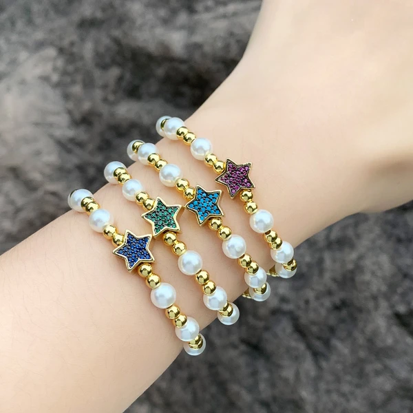 Pulseira de pérolas em liquidação feminina, moda europeia e americana, feita à mão, com miçangas, estrela de cinco pontas, joias de mão mais vendidas, brk32