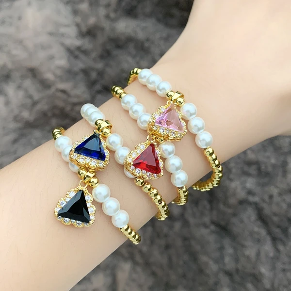 Pulseira de zircônia triangular com design de nicho e tendência de joias em liquidação 2024, pulseira de pérolas feminina brk31