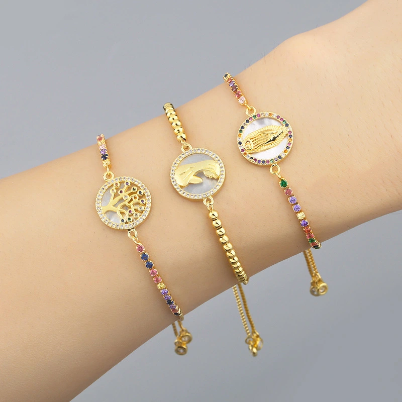 Pulseira estilo europeu e americano abalone diamante pulseira nossa senhora da vida árvore pulseira joia feminina brc50