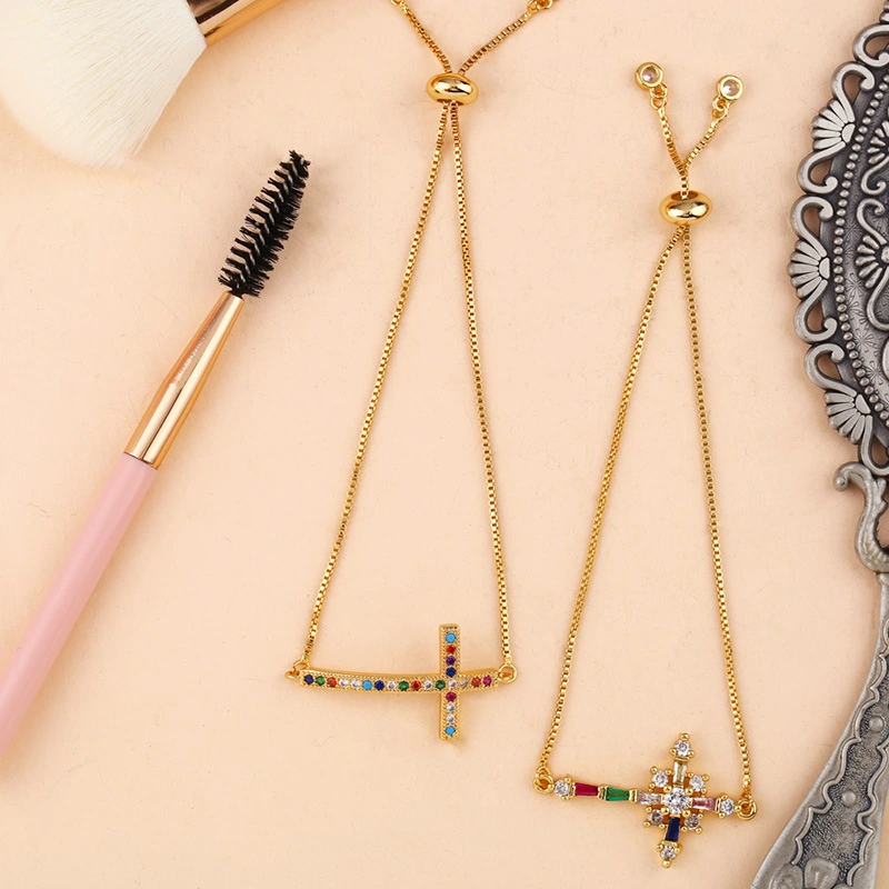 Pulseira estilo europeu e americano com pingente de cruz e diamante banhado a ouro brb68