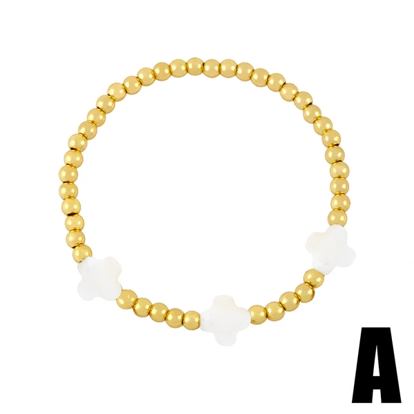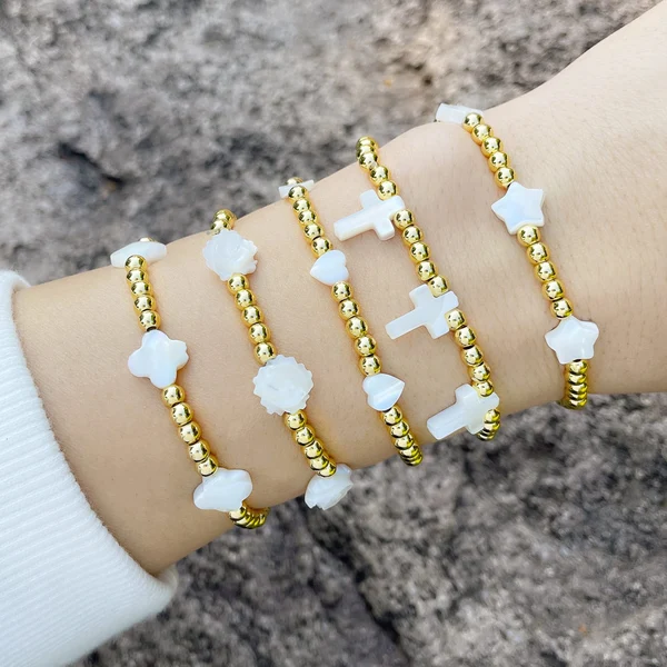 Pulseira europeia e americana com contas de concha, cruz, amor, estrela de cinco pontas, rosa, pulseira elástica bre65