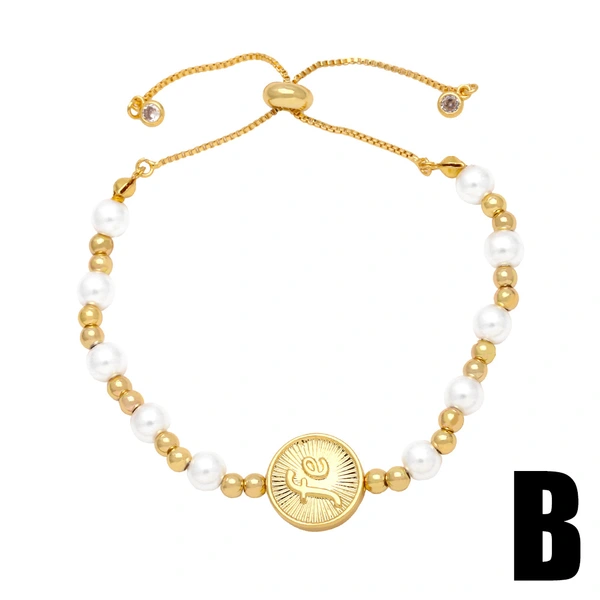 Pulseira feminina com 26 letras em inglês, contas de cobre europeias e americanas, pulseira elástica de pérolas, pulseira fashion com letras de coroa brf80