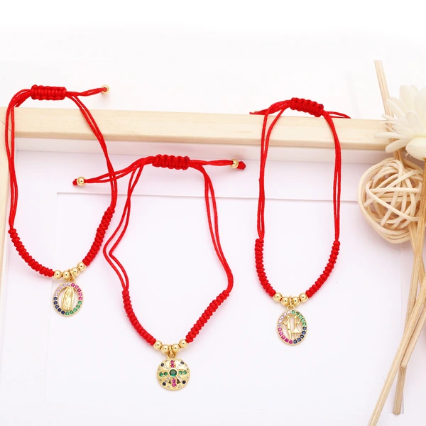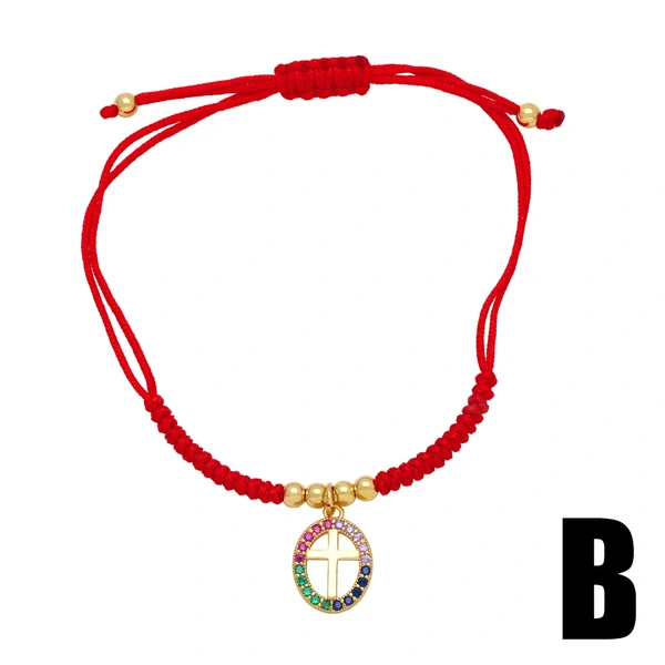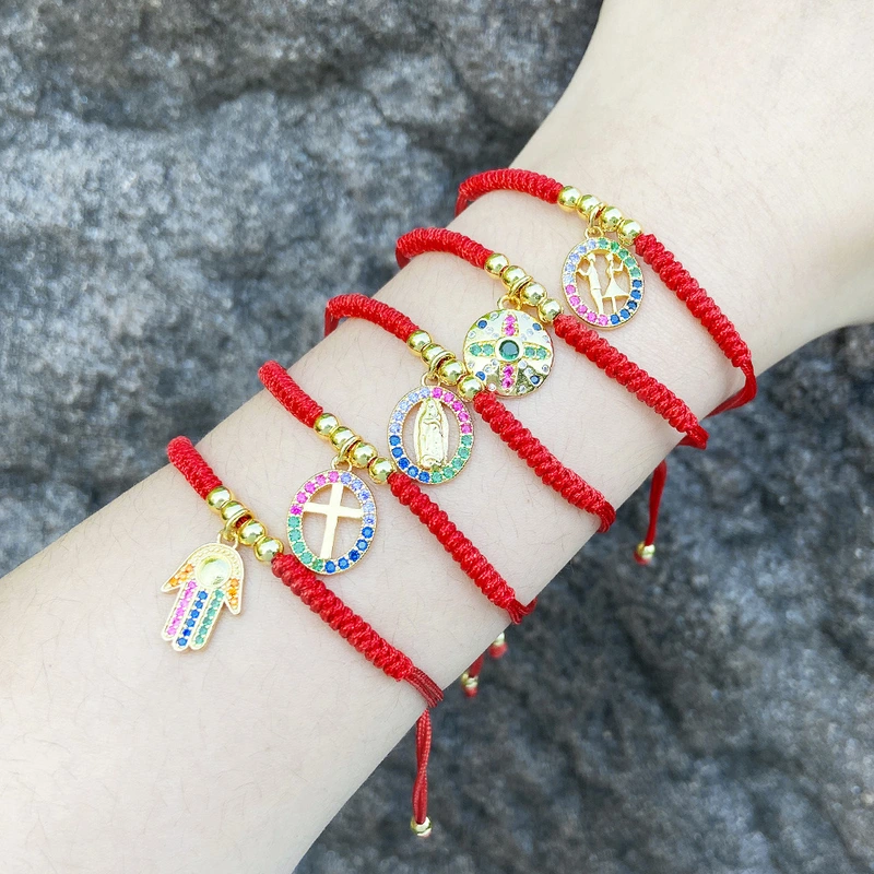 Pulseira europeia e americana nova trançada de corda vermelha madonna com design de nicho, pulseira versátil com cruz e palma brk86