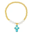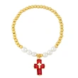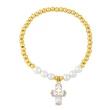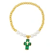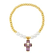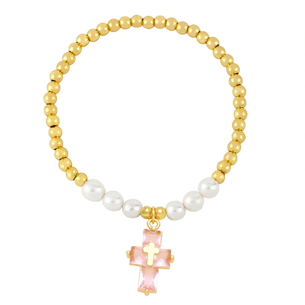 Pulseira feminina com pingente de contas de ouro verdadeiro, cruz de cobre europeia e americana, bracelete elástico geométrico bra12