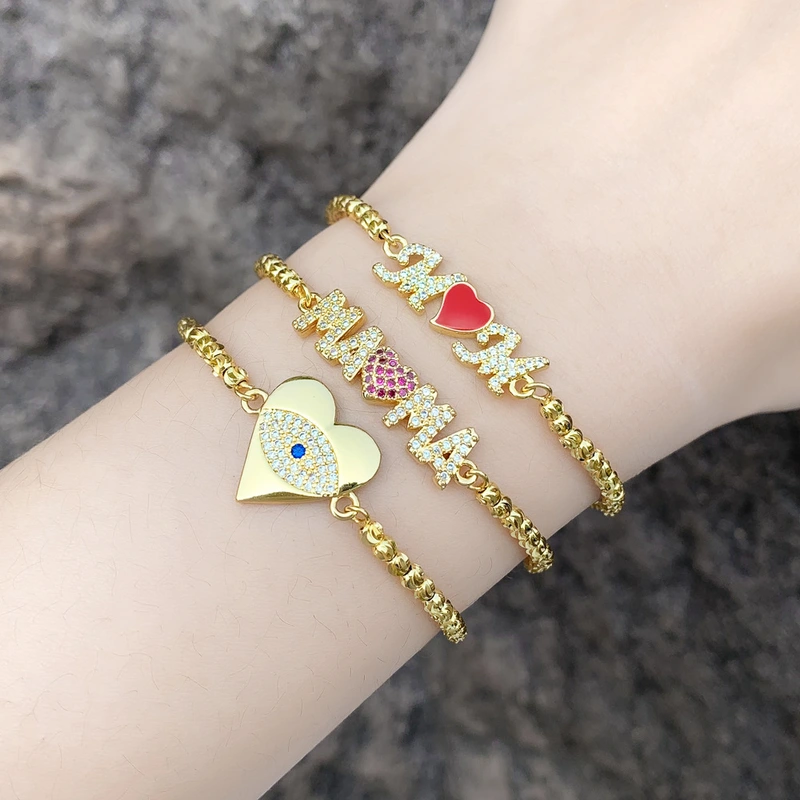 Pulseira feminina de letras de amor de mamãe, moda europeia e americana, design de nicho, pulseira para dia das mães, bra32