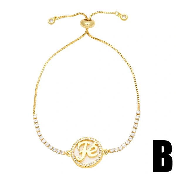 como joias pulseira de zircônio completo com 26 letras inglesas banhada a cobre joias de ajuste de ouro verdadeiro brm62