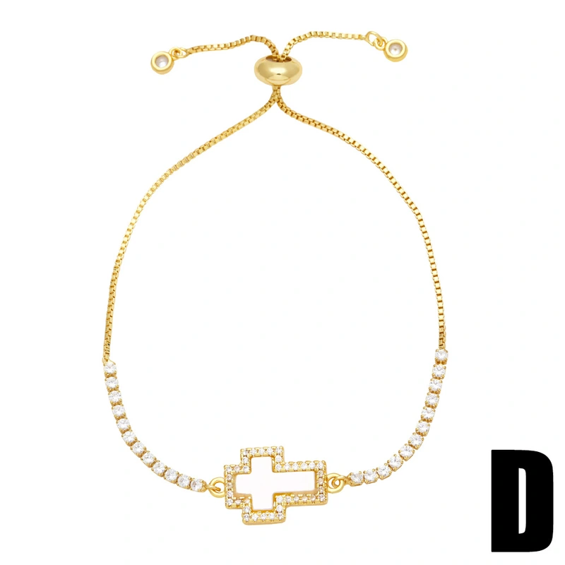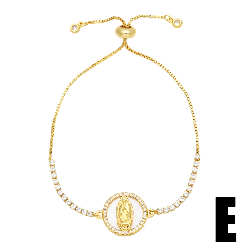 Pulseira feminina estilo europeu e americano com cruz de nossa senhora, pulseira simples de diamante e zircônia, joias de mão ajustáveis ​​brb39