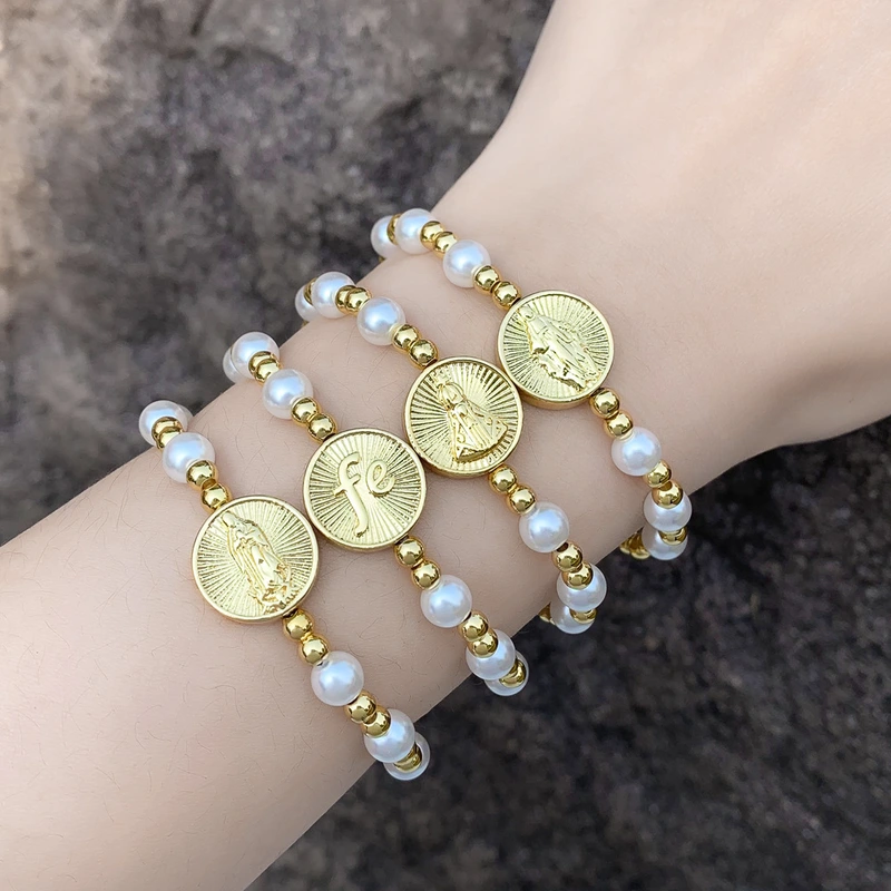 Pulseira popular europeia e americana com contas de pérolas da Virgem Maria, design de nicho simples e elegante, bra31